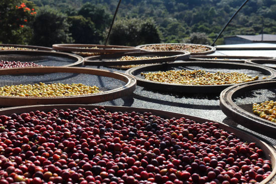 Drying: Fermented cherries spread on raised beds or patios for extended, even drying in the region’s sunny yet controlled climate, with regular turning to achieve 10-12% moisture.